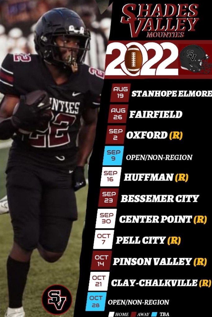 The 2022 Shades Valley Mounties open their season Friday night on the road at Stanhope Elmore. The Mounties are looking to bounce back from last year’s 3-7 season. Valley advanced to the second round of the 6A playoffs in 2020, and the Mounties are hungry to get back to postseason play.